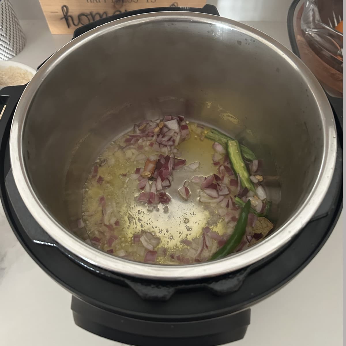 - Step 1: Use the Sautee option, add ghee and oil. When hot, add onions and fry till browned. Next, fry cashews and raisins.