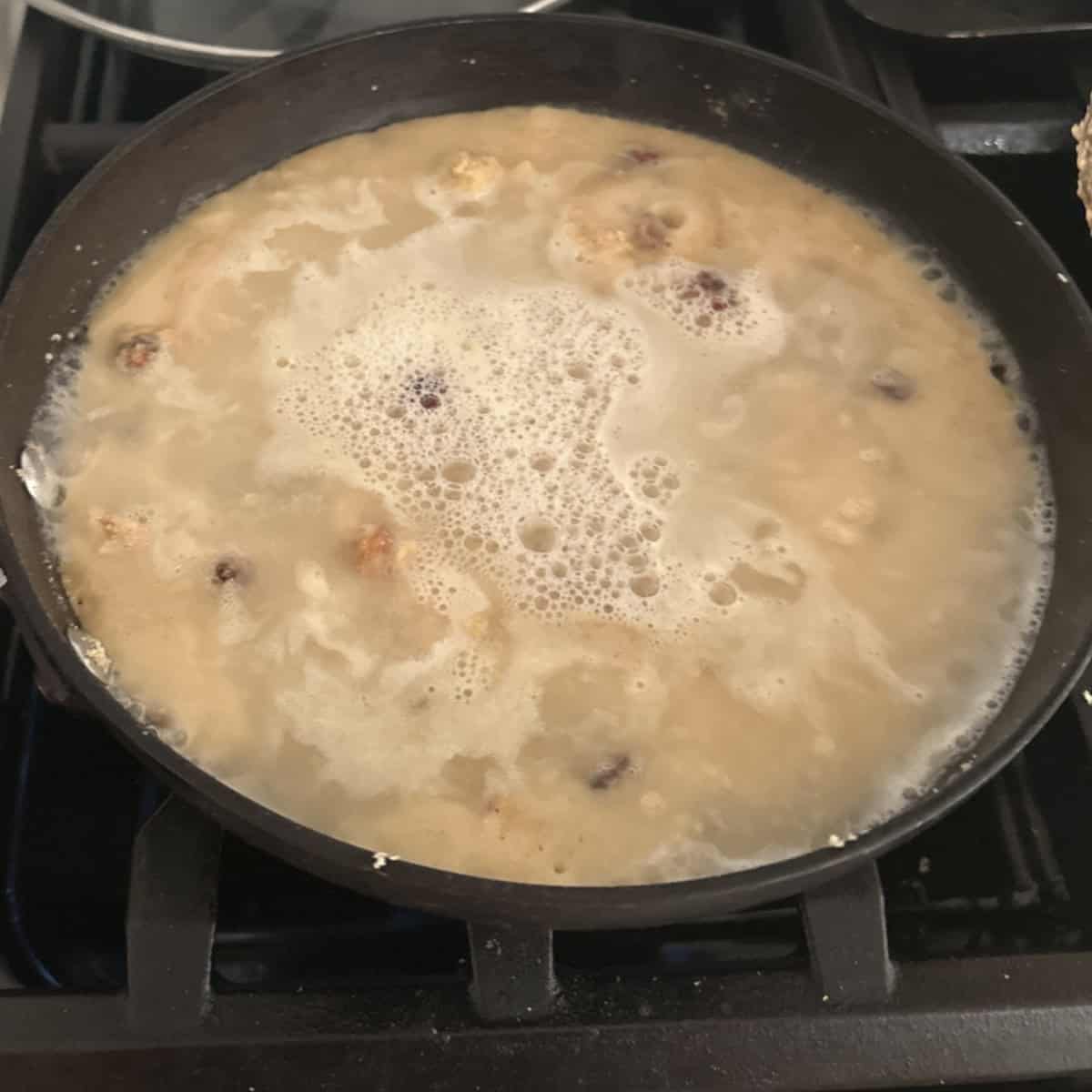 Step 7) You'll notice the contents loosen slightly, which is completely normal. Keep stirring and sprinkle in the fragrant cardamom powder.
